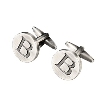 Bouton de manchette personnalisé plaqué argent en métal avec logo personnalisé drôle rond blanc Alphabet boutons de manchette en argent avec logo